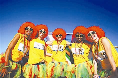 6月17日,当地模特在伊丽莎白港的海滩为世界杯足球赛进行宣传。