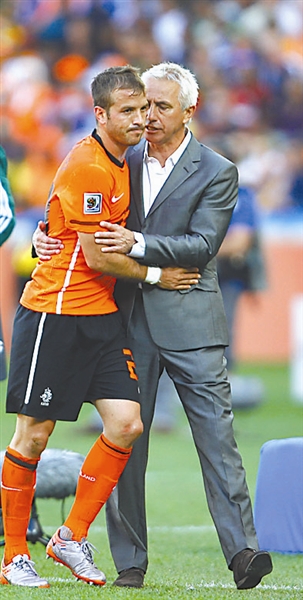荷兰队主教练范马尔维克(右)踌躇满志。新华社记者 廖宇杰 摄