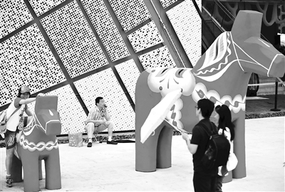 6月12日,一位游客坐在世博园瑞典馆旁休息打电话。这些琐碎的休憩场景构成了世博园游客短暂而又难得的“慢生活”。 新华社记者 王建威摄