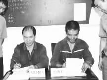 进入安全月,重庆能源集团新田湾煤矿采煤队推行的“安全担保制”让员工望三违却步。安全担保制规定:有三违行为者要在本班组请2名无违章、无事故责任的员工作为安全担保人,向担保人承诺遵章守纪、不再违章,担保方同意后签订担保责任书,负责对担保对象做帮教转化工作和安全行为跟踪管理,被担保者若本年度内不再违章,则按比例返还处罚款并奖励担保人。6月22日,8班员工娄强与担保人签订担保责任书。曹永龙 摄