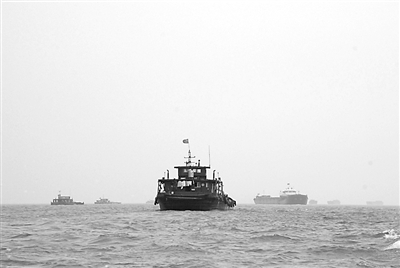湖面上运沙船首尾相连,鱼贯而行。本报记者田杰摄