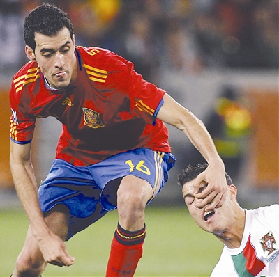 八分之一决赛,C罗受到西班牙队的重点盯防。比赛结果,西班牙“磕掉”葡萄牙。