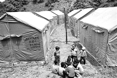 7月2日,在广西凌云县沙里瑶族乡果卜村,孩子们在地质灾害避险点玩耍。