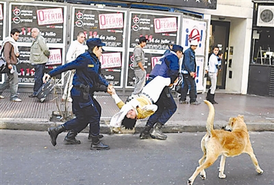 7月3日,在阿根廷首都布宜诺斯艾利斯,警方制服一名肇事球迷。当日,阿根廷队在南非世界杯四分之一决赛中以0比4负于德国队,一些球迷情绪激动,引发骚乱。