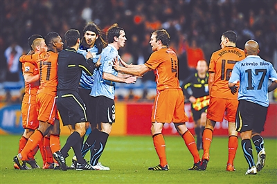 荷兰与乌拉圭半决赛后,双方发生冲突。