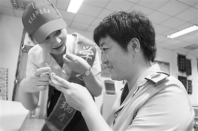 7月2日,在挂满锦旗的“瑞青工作室”里,全国劳动模范、全国职工道德建设标兵余瑞青正在向合百集团蚌埠百货大楼公司第七届“双争”活动中的徒弟们传授服务心得。近日,蚌埠百货大楼公司工会组织“双争”服务顾问代表来到蚌埠长途汽车站,学习余瑞青30年如一日为旅客提供满意服务的做法。
