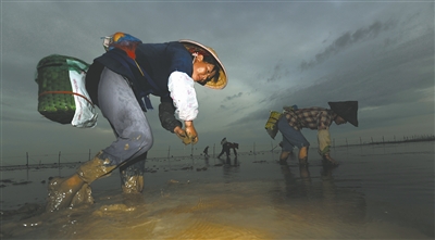 在宁波杭州湾湿地附近仅仅40多公里的海岸线上,就有上万名像黄显清一样的赶海人。严格地说,黄显清们是受雇于以市场为中介的打工者。已有的资料表明,从上世纪90年代初期起,我国江浙闽等沿海一带就开始陆续有外省农民带着农具进家庭、到海滩打工。近年来,这种流动也呈明显上升的趋势。采访中黄显清的妻子说:“我们现在已经没法再回到四川老家生活了,再说,那么多的酒店和餐桌也离不开赶海的人哩。”这就是说,黄显清们已经成为这片滩涂上和谐生态的一部分。