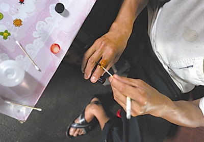 17时27分:唐敬明拿出了碘酒,为赶海划伤的手指头消毒。他说:“长期赶海的人都有一套自救的措施,小伤一般不进医疗所。”