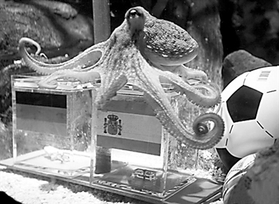 ——德国神奇章鱼保罗,准确预测西班牙击败德国进入足球世界杯决赛,缔造世界杯战果预测六连中完美纪录,西班牙球员赛后表示要感谢保罗。据悉,德国队落败令保罗受到德国球迷的“追杀”,西班牙球迷则欢迎它“移民”。2008年出生的保罗,本届世界杯至今,准确预测德国队参与的全部六场比赛的胜负,这使它在全球声名大噪,被称为“八爪神算”。