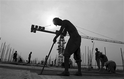 7月7日,在安徽亳州市南部新区建设工地,工人在高温下工作。当日是农历小暑节气,亳州市继续出现高温天气,建设者们在烈日下坚持工作。 新华社发 张延林 摄