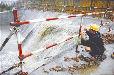 7月12日,合肥市一工地,泄洪如瀑布。刘兵生 摄/CFP