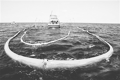 英国石油公司用于应对墨西哥湾漏油事件的成本目前已经攀升至35亿美元。图为7月11日在美国路易斯安娜州海岸,一艘小船用充气管打捞海面泄漏的石油。吉平 供图