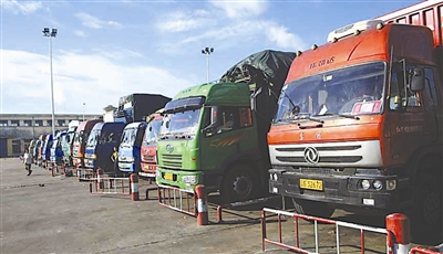 7月15日,由于琼州海峡全线停航,部分货车滞留在海口秀英港。