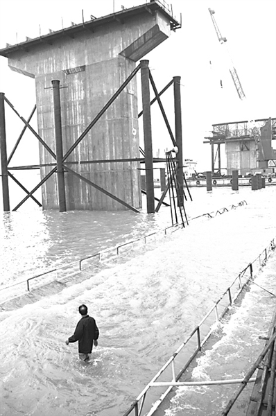 当初参与栈桥设计的连井龙副总工程师,无奈地对记者说,当时设计参数是1998年特大洪水时的同期水位,没想到今年目前已超出当年同期水位约3米,他告诉记者,自己参与过三座长江大桥的建设,没见过江水涨得这么快的,都有些招架不住了。