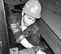 7月14日,重庆能源集团天府磨心坡矿运输区发生矿车穿笼故障,煤仓检修班蔡海冒着酷暑赶去检修,经细心排查后找出了症结所在,不到两小时就将地面煤翻笼矿车穿笼这一疑难故障处理好。然后,他又对煤翻笼内外阻车器、闸块、电磁铁等部件进行了全面调试,彻底解决了长期存在的疑难故障。刘长兵 摄