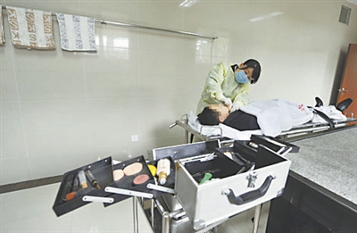 整容化妆间,又一具遗体经过化妆后被推走,多少人从这里推进推出,刘飞已经记不清了,但每一次都会给她的心灵带来不少对于人生的感触。