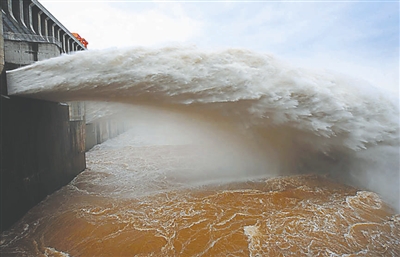 7月19日下午,三峡大坝开启7个泄洪深孔和2个排漂孔泄洪。