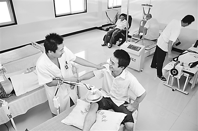 7月20日,获得月度“星级员工”的安徽淮北矿业朱庄煤矿职工在享受免费保健理疗服务。由于长期工作在环境潮湿的矿井下,一些矿工患上了风湿病、关节炎等疾病。为此,该矿成立职工保健理疗室,安排专业医护人员6名,设置20个服务项目,并配置了先进的电脑数控牵引床等设施,为矿工解除病痛提供了良好场所。韩 荣 摄