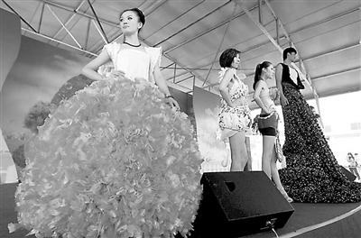 塑料袋、旧报纸、旧磁带“变身”华服。