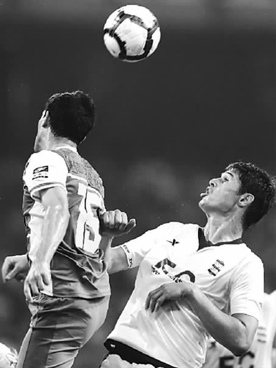 7月21日,伯明翰队球员日基奇(右)与北京国安队球员巴乔在比赛中争顶。当日,中超北京国安队与英超伯明翰队在北京“鸟巢”进行的一场足球友谊赛中,国安0比1不敌对手。 新华社记者 王丽莉 摄