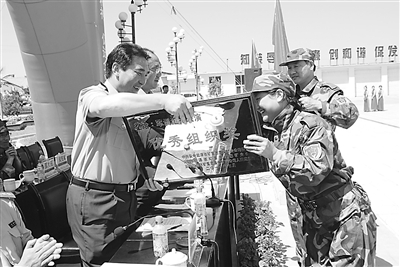 冀中能源张家口矿业集团康保矿,注重班组管理,经常在班组间开展多种形式的竞赛活动。每项活动结束时,在全矿范围内进行评比、奖励,从而调动了每个班组职工的积极性,比、学、赶、帮蔚然成风。图为职工军训活动结束后,为优秀班组颁奖。本报记者 张世斌 通讯员 刘树勇 摄