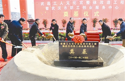 今日精彩:今年1月25日,湖北省委副书记、武汉市委书记杨松,武汉市长阮成发挥锹锄土,为武昌工人文化宫整体改造工程奠基。