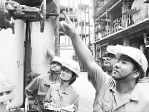 持续高温、暴雨和洪涝中如何确保航空煤油和白油足额供应市场?中石化荆门分公司分子筛脱蜡车间工艺四班班长潘健率8名班员用行动作答。他们熟练使用望闻问切“中医疗法”保设备巡检不漏隐患,用边干活边互相提问启发之法解难题、掌控操作过程。在7月20日的车间抽查中,该班不仅超额完成当月加工任务,而且工艺指标和操作平稳率都名列前茅,能耗和加工损失均低于车间考核值。吉春荣 彭娇妍 摄