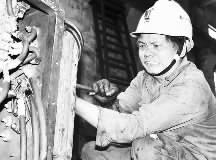 7月20日,重庆能源集团打通一矿的一台空气锤设备因气封弹簧挡块磨损严重而瘫痪,钳工余明孝检修时发现,产于上世纪60年代的空气锤设备如今市场上早无踪影,要让设备起死回生只有自制零部件。于是,他尝试动手制作。从煅打毛坯、手工制作到精细安装、运行调试,两小时后,瘫痪设备开始运行。老师傅们说,从1997年至今,经他手起死回生的老设备都数不清了。陈巧莉 杨毅 摄