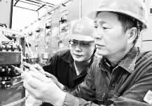 7月19日,江汉油田水电厂变电车间职工康艺(左)网络显能:27万人次参加网上答题,争夺技师提前晋级考试资格,结果只有57人过关,康艺获得第一名。据企业规定,没有工龄和从业年限,只要网上答题成绩获专业前两名,便可提前参加技师考试。平时潜心钻研技艺的康艺,目前正紧张准备,向半个月后的技师考试冲刺。 李沭 朱治建 摄