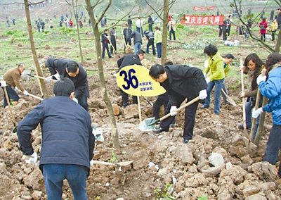 绿色发展、低碳经济,这是中国政府向世界的承诺,重庆市政府坚持以“生态立市、绿色兴政”的理念,按照“全面发力,今年再种十年树 ”的总体要求,继续在全市全行业开展劳动竞赛和“森林重庆建设推进年”、 “百万林农万元增收致富行动计划”等活动,力争2012年成功创建为国家森林城市,到2017年森林覆盖率达到45%,实现林业产值500亿元,为早日建成生态系统稳定、林业产业发达、生态环境优良的森林重庆建设目标而努力奋斗!