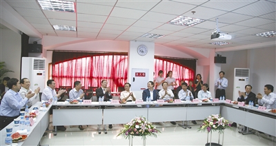 重庆市总工会党组副书记、副主席黄建国(中)主持研究劳动竞赛评审方案