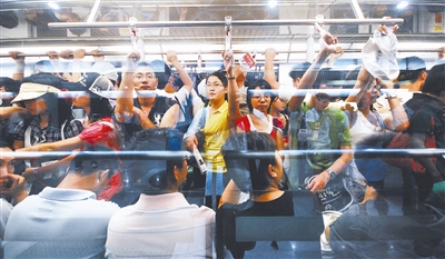 7月25日,世博热刷新上海地铁客运新高,乘客在乘坐上海地铁2号线。当日,上海地铁安全宣传周在上海启动。