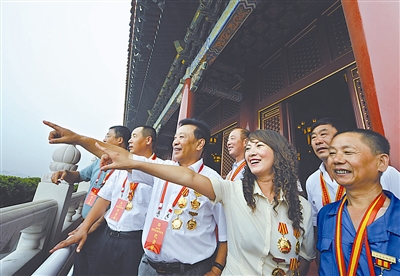 7月27日上午,来自全国各地的300名全国劳模和全国五一劳动奖章获得者登上天安门城楼参观。劳模们在京期间还参观了鸟巢、国家大剧院等。7月28日他们将赴北戴河休养。