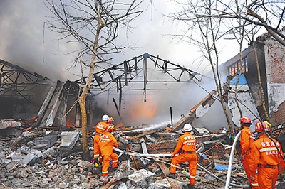 7月28日,消防队员正在事故现场灭火。新华社发 (张苏杰 摄)
