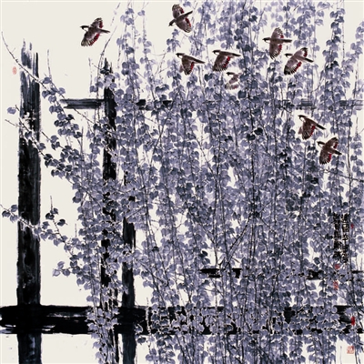 雀 跃 (国画)马新林