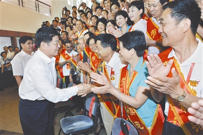 王兆国在讲话中首先向劳模们表示崇高敬意和诚挚问候。他深情地说,劳动模范是工人阶级的优秀代表,你们来到北戴河休养,体现了党中央对劳模的关心重视、社会各界对劳模的尊重关爱。现在正值盛夏酷暑,此时此刻我同大家一道向高温中奋战在生产一线的广大职工群众致以亲切问候和良好祝愿。