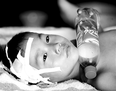7月31日,在爆炸事故中受伤的男孩程新涛在翼城县人民医院接受治疗。