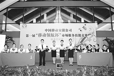 安徽移动公司第一届“移动领航杯”市场服务技能竞赛皖北片区赛7月24日在安徽淮北举行。当天,移动公司员工分别进行了业务笔试、手机操作、计算机操作和现场竞赛等4个板块的比赛活动。图为员工的“现场竞赛”场面。本报记者 陈华 通讯员 舒琳霞 摄