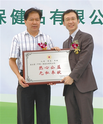 康宝莱与中华骨髓库渊源深厚。公司先后有两位员工成功捐献了造血干细胞,一例是2007年8月,公司员工杨洋为韩国患者捐献了骨髓;另一例是2009年12月24日,圣诞夜当天,康宝莱员工王军建为北京男孩捐献了骨髓。目前,包括公司总裁李延亮在内的200多名员工都自愿加入了中华骨髓库。