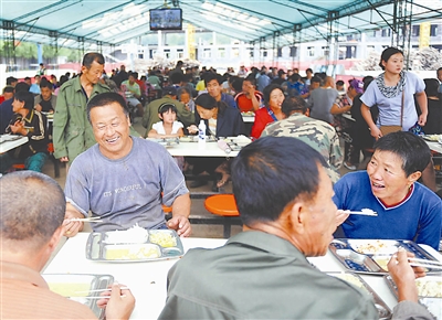 安置点里温馨的午餐