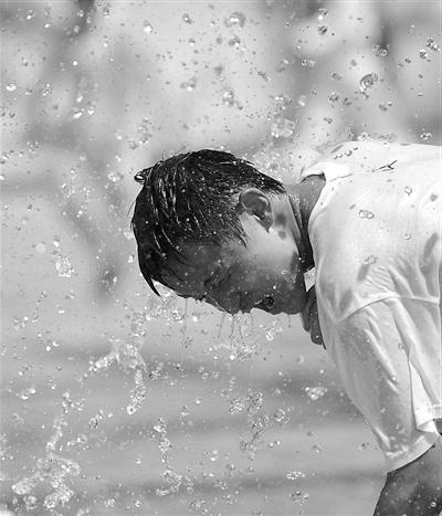 8月2日,一位男孩在长沙世界之窗公园参加泼水游戏消暑。从8月1日开始长沙持续高温,当地气象部门连续发布高温橙色预警。目前,长沙市各游乐休闲场所纷纷推出消暑新招,为消费者提供个性化的避暑服务。新华社记者 李尕 摄