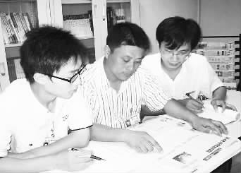 8月3日下午,淮北矿业芦岭矿保运二区职工书屋里,该区保掘班班长万兆岭(中)带领他班两名青工在学习工人日报“班组天地”学习专栏里“莱钢炼钢厂机修车间”的学习经验。自工人日报开设“响应倡议·读书·学习专栏”以来,该班及时关注每期内容,将适合自己的学习办法记录下来,并运用到本班学习中。该班因善于学习,在上半年“争创最佳学习型班组”活动中荣获一等奖。 刘燕 摄