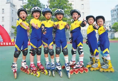 轮滑运动已成为青少年颇为喜欢的健身运动之一。苏友 摄