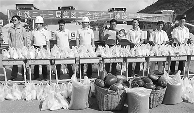 7月中旬以来,全国各地很多地区创历史同期最高气温。近日,中铁二十三局集团公司工会组成两个慰问组,奔云贵,去华南,送去10余万元的西瓜、白糖、毛巾、绿豆、茶叶、清凉油、风油精等清凉饮料和防暑降温食品、药品,给在烈日高温炙烤下的铁路一线工人送去了一片清凉,极大的鼓舞了参建员工的士气。