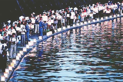 8月9日是日本长崎遭到美国原子弹攻击65周年纪念日。当天在长崎和平公园举行慰灵及祈祷和平仪式,悼念死难者,祈祷世界和平,呼吁实现“无核世界”。图为晚上举行的烛光守灵仪式。 吉平 供图