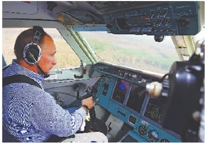 8月10日,俄罗斯总理普京抵达梁赞州佳吉列沃军用机场,立即登上俄紧急情况部航空消防局的别-200型水陆两用飞机。普京亲自驾机从河中汲水并对燃烧的森林低空喷洒操作,扑灭了两处火点。 肖劼 供图
