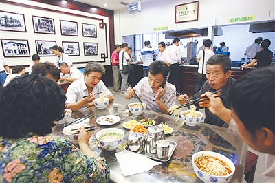 8月11日,在兰州一间拉面馆,顾客在吃早餐。