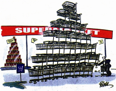 超市便民车应是方便消费者的,可是这样车叠车使用非常不便。如若“便民”只是摆样子,人们更加厌恶生活中的“虚设”。