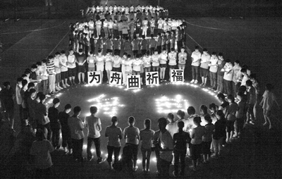 8月14日,浙江省诸暨市天马实验学校的学生点燃蜡烛,为甘肃舟曲遇难同胞祈福。