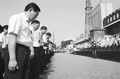 8月15日上午,兰州东方红广场举行万人悼念活动,向舟曲特大山洪泥石流遇难者同胞致哀。 本报记者 康劲摄